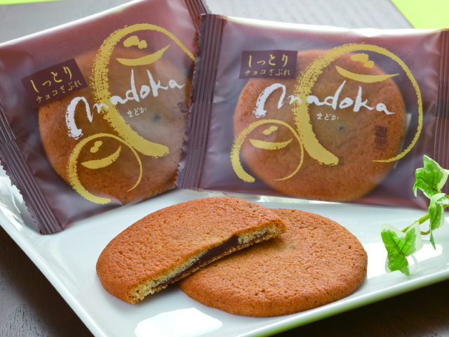 店頭販売/通販しっとりしたサブレ生地にチョコをはさみ丁寧に焼き上げました。幸せと素敵なご縁(円)を願い名付けました。