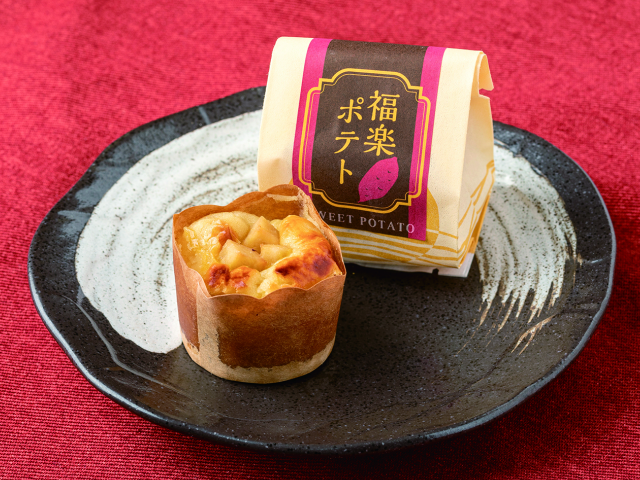 店頭販売/通販上面に紅はるかのダイスカットを散りばめました。ほくほく甘い滑らかなスイートポテトの味わいが楽しめます。