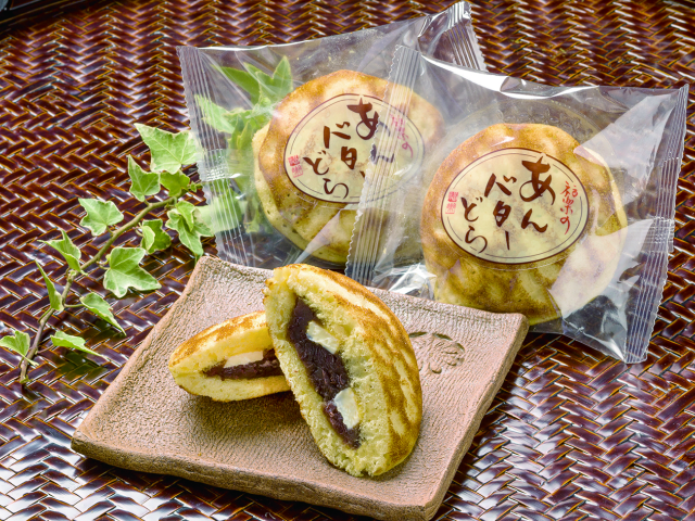 店頭販売/通販しっとりした生地に北海道産小倉餡とバターを挟み込みました。バターと餡のコラボが絶妙のハーモニーをもたらし、癖になる味に仕上がっています。