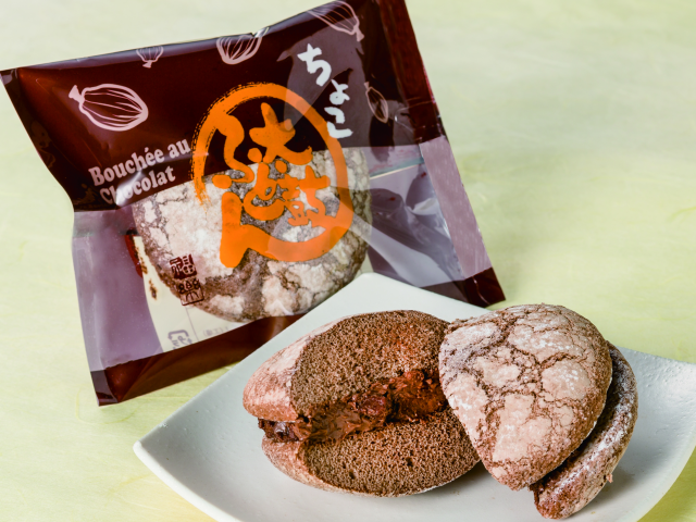 【冬限定】店頭販売のみ特製チョコクリームを、ふかふかの生地で挟んだ、当店一番人気のふとん太鼓のチョコレートタイプです。チョコ好きの方は見逃せない一品です。
